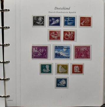 DDR, 1949-1969, kpl. Slg. im Binder, anfangs in etwas gemischter Erhaltung, ab ca. 1953 fast alles postfrisch, mit besseren Werten wie Bl. 7, 8/9A/B, Akademie, Chinesen, Köpfe, Pieck usw., dabei auch ein guter Dienst-Teil mit gesuchten Marken. Mi. 3200,-