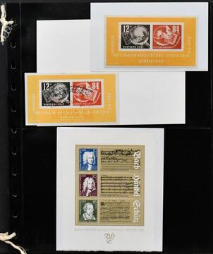 DDR, 1949-1973, postfr./ungebr. bzw. gest. Slg. im Vordruckalbum, dabei Chinesen, Akademie, Bl. 7III (Mi. ca. 300,-), Bl. 10/12 usw. Mi. 2500,-