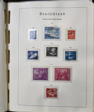 DDR, 1949-1990, umfangreiche, postfr. u. gest. Slg. in sechs Vordruckbänden, alles weitgehend vollständig mit Anfangswerten, Mi. 3000,-