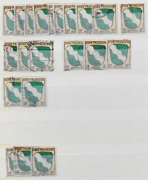 Französische Zone, Allg. Ausgabe, Slg. von Nr. 1-13 vielfach kpl., insgesamt etwa 550 Werte, dabei Nr. 5 per 21 (Mi. 1575,-), Nr. 12 per 19 (1330,-), 13 per 21 (1890,-) usw. Gewaltiger KW!