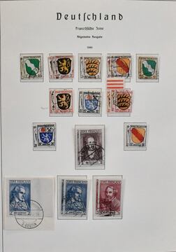 Französische Zone, 1945/49, gest. Slg. mit u.a. Allg. Ausgabe Nr. 1/13 (Mi. 250,-), Baden Bl. 1A/B (560,-), sowie weiterer Bl. 1A mit PF I (Mi. 750,-)