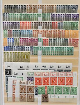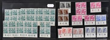 Gemeinschaftsausgabe, Partie von etwa 1500 postfrischen Werten, häufig in Einheiten inkl. vielen Oberrändern, dabei Nr. 934PORdgz per fünf (Mi. 100,-), 953PORdgz per sechs (144,-), 955PORdgz per zehn (200,-), vier Druckerzeichen Arbeiter (Mi. 240,-) usw.