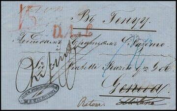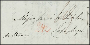 "St. Thomas-Dänemark", 1850, seltener Karibik-Brief aus St. Croix mit rs. Bogenstempel "St. Thomas" via Hamburg (rs. K.D.O.P.A.-K2) nach Kopenhagen
