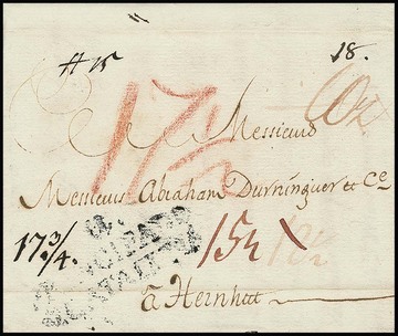 "Spanien-Sachsen" mit seltenem Transit via Andorra, Brief aus Barcelona 1792 mit Transit-Stempel "U Principado De Cataluna" von Andorra nach Herrnhut/Sachsen, Taxe 17 3/4 Groschen