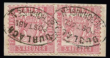 "Durlach-Berghausen" klar auf Prachtbriefstück (etwas hinterklebt) mit zweimal 3 Kr. rosa