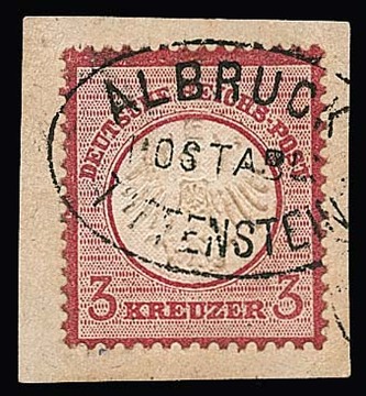 "169" (Werbach), seltener NS zentrisch auf Briefstück mit fast vollrandiger, farbfrischer 6 Kr. schw./gelb
