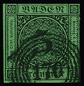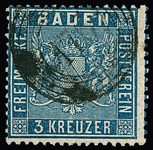 "170" (Basel, Bad. Bahnhof), seltener NS auf üblich geschnittener 3 Kr. (+ 600,-)