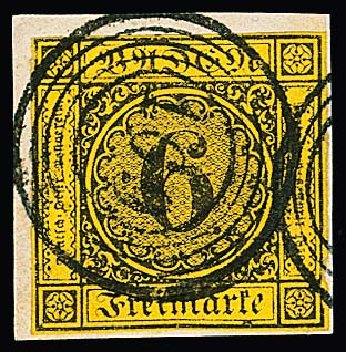 "126" (Schappach) klar auf 9 Kr., Attest Flemming "... wahrscheinlich aus der Bogenecke stammend, waager. Bug, sehr gute Entwertung"