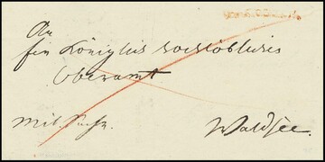 "Stockach", vier Briefe mit vorphil. Stempeln, dabei die beiden seltenen roten L1 "VON STOCKACH" und "V. STOCKACH", Feuser 3449-4, -5, 700,-, ferner seltener provisor. L1 "STOCKACH I" (Feuser unbekannt) (1808) usw.