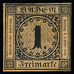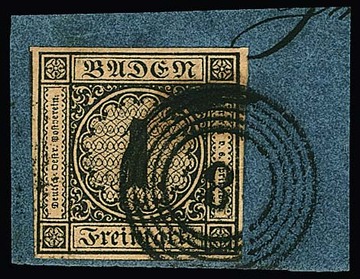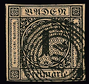 1 Kr. schw./bräunlich, meist breit- bis überrandiges Luxusstück mit NS "104" (Offenburg), Fotoexp. Stegmüller. Mi. 320,- +