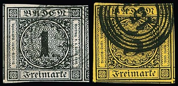 1 Kr. schw./sämisch, ausserordentlich seltene ungebrauchte Marke mit großen Teilen des Originalgummis (!) sowie im oberen Bereich Falz, zwei kleine Eckreparaturen rechts unten bzw. oben, von guter Wirkung. Ungebrauchte Nr. 1a mit Originalgummi sind sehr selten (lt. Attest Flemming sogar Unikat), ferner sign. Bühler. Mi. 4500,-