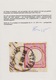 1 Kr. schw./bräunlich, allseits sehr breitrandig, drei Seiten Nebenmarken (!), auf blauem (!) Luxusbriefstück mit NS "8", Mi. 320,- +