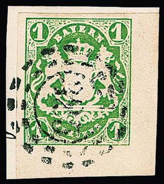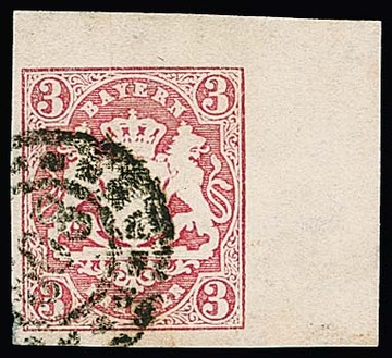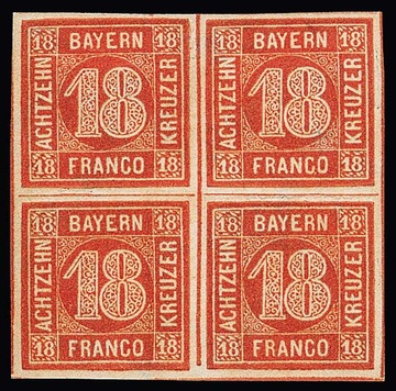 18 Kr. orangerot, teils überrandiges Kabinettstück mit oMR "28" (Augsburg), nur im Überrand unten ausserhalb des Markenbildes typische "bayernbrüchige" Stelle, Fotoexp. Sem. Mi. 600,-