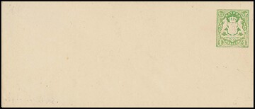 Privat-Ganzsache 1 Kr. grün, seltenes Couvert mit kopfstehendem Wertzeichen-Eindruck, erkennbar am rückseitigen Klappenstempel oben, als ungebrauchtes Prachtcouvert, Unikat!