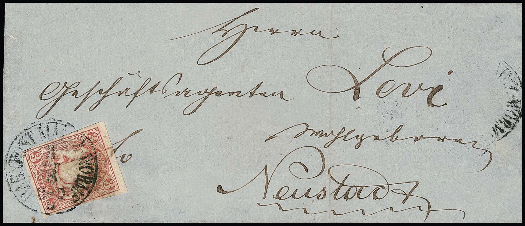3 Kr. rosa, Prachtstück auf dekorativem, zart gestempeltem Bischofsbrief (aus Steinkirchen) nach München