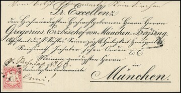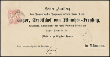 3 Kr. rosa, Prachtstück auf zart gestempeltem, gedrucktem Bischofsbrief 1867 nach München