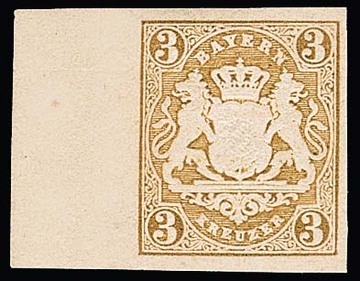 3 Kr. ockerbraun, ungebrauchter Probedruck mit breitem linkem Bogenrand, sign. Brettl