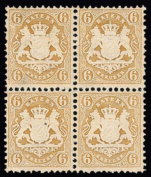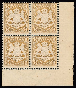 6 Kr. ockerbraun, ungebrauchter Kabinett-Viererblock aus der rechten unteren Bogenecke, sign. Bühler, Schmitt. Mi. 240,- ++