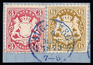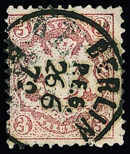3 Kr. rosa (kl. Unebenheiten) mit zartem bayerischem Stempel sowie klarer Nachentwertung durch K1 "Berlin P.E. 6", sign. Brettl