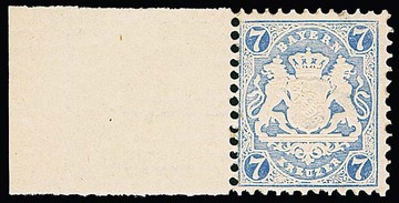 7 Kr. hellblau, Neudruck für die Wiener Weltausstellung postfrisch mit breitem linkem Bogenrand, kleiner Eckbug, gut sign. Schmitt. Mi. 500,-