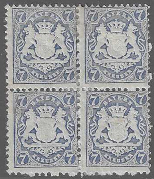 7 Kr. ultramarin, ungebrauchter Pracht-Viererblock, Fotoexp. Stegmüller. Mi. 160,-