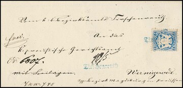 7 Kr. blau auf Kabinettbrief mit seltenem blauem (!) Fraktur-L1 "Tirschenreuth" mit Datum