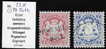 7 Kr. dunkelblau (sign. Brettl, Mi. 220,-), sowie 3 Kr. rosa mit besserem L2 "Postablage ROTH", sign. Sem, zwei Kabinettstücke