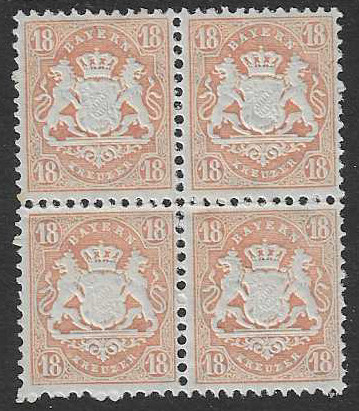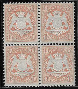18 Kr. mattziegelrot, postfrischer Viererblock (in der Zähnung etwas vorgefaltet), Mi. 220,-