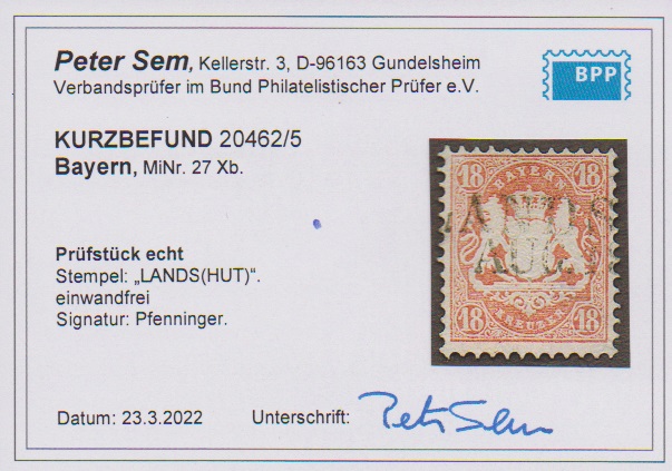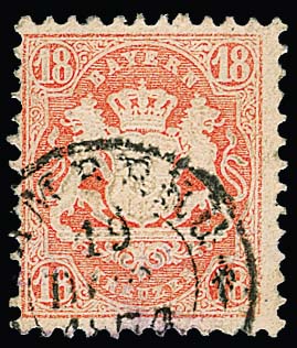 18 Kr. mattziegelrot, gutes Wz., Kabinettstück mit K2 "Bamberg", sign. Brettl. Mi. 300,-