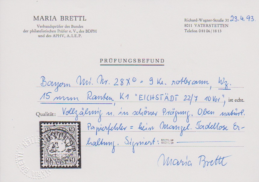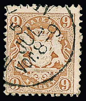 9 Kr. gelbbraun, gutes X-Wasserzeichen, gestempeltes Kabinettstück, sign. Brettl. Mi. 600,-
