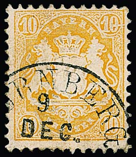 10 Kr. dunkelgelb, gutes Wasserzeichen, zentrisch gestempeltes Kabinettstück, sign. Brettl. Mi. 500,-