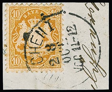 10 Kr. chromgelb auf Kabinettbriefstück mit vollem K1 "München I", sign. Pfenninger. Mi. 340,-