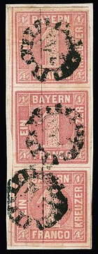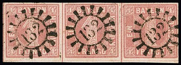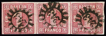 1 Kr. rosa, gute Platte II, leichte Mängel, aber optisch ein schönes Exemplar mit zentr. K2 von Nürnberg. Mi. 2000,-, Fotoexp. Stegmüller