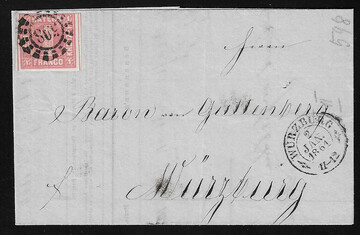 1 Kr. rosa einzeln auf Kabinett-Ortsbrief mit L2 "München", sowie (oben ber.) auf Ortsbrief aus Würzburg, 1860/61