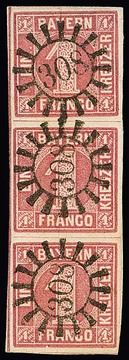 1 Kr. rosa, senkrechter Dreierstreifen auf Prachtbriefstück, sign. Sem. Mi. 230,-
