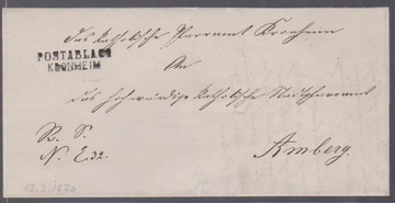 "Kronheim", 1870, klarer Postablage-L2 auf unfrankiertem Brief