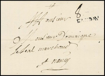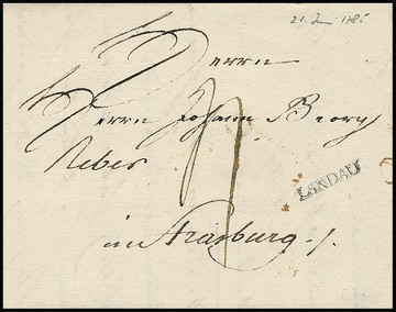 "Landau", 1738, kleiner L1 "LANDAV" auf Brief mit Inhalt nach Nancy, Feuser 1888-2/500,-
