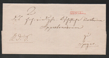 "Kusel", 1833 ff., braunroter und roter L1 "KUSSEL" auf zwei Briefen