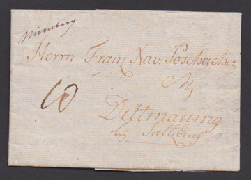 "Nürnberg", 1801, hs. Aufgabe auf interessantem Forwarded-Brief mit Inhalt aus Aachen, in Nürnberg zur Post gegeben nach "Dittmaning bey Saltzburg"