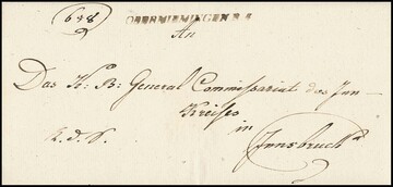 "Obermiemingen R.4.", 1813, bayerische Besetzung Tirol, klarer Rayon-L1 auf Brief mit Inhalt