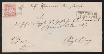 "Oberstaufen", seltener "gerundeter" Ra2 als Entwertung auf Brief 1870 mit 3 Kr. (Zf.)