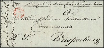 "Pappenheim", 1834, seltener roter Fingerhut-K1 klar auf Brief nach Weißenburg