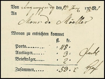 "Regensburg", 1782, kleiner Portozettel für ein Paket aus Regensburg (nach Wien?)