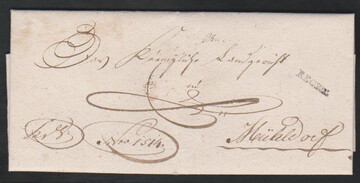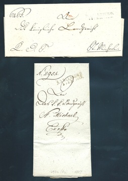 "Regen", 1823 ff., kleiner (2) bzw. großer vorphil. L1 (5) auf gesamt sieben Briefen