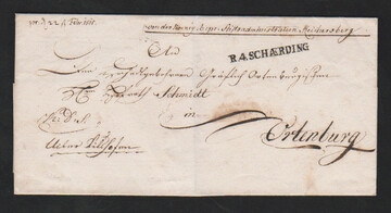 "Schaerding", 1815, bayerische Besetzung, Rayon-L1 klar auf datierbarem Brief (aus Reichersberg) nach Ortenburg