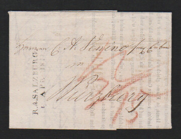 "Salzburg", 1811, bayerische Besetzung, Rayon-L2 auf Brief mit Inhalt nach Würzburg