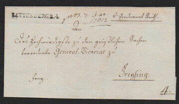 "Rattenberg", 1812, bayerische Besetzung Österreich, Rayon-L1 auf datierbarer Briefhülle nach Freising