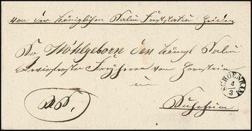 "Schönram", (1835), extrem seltener schwarzer Fingerhut-K1 klar auf Faltbrief (Feuser 1000,-)