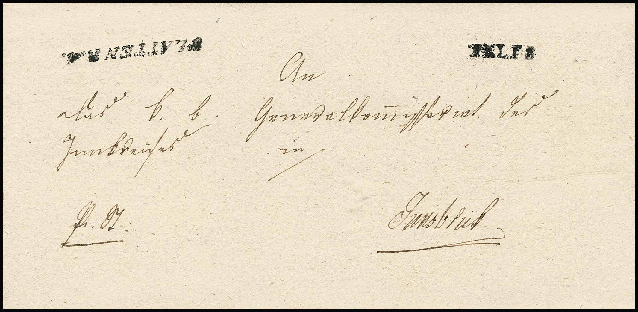 "Telfs" und "Platten R.4., 1811, je seltener Tiroler L1 auf Brief mit Inhalt, Feuser 250,-