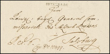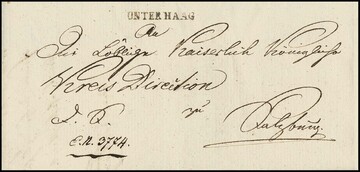 "Unterhaag", 1816, 7. Mai, seltener Oberösterreich-L1 (Innviertel), sieben Tage nach Rückgabe der ehemals bayer. Postanstalt an Österreich zum 1.5.1816, auf Brief nach Salzburg